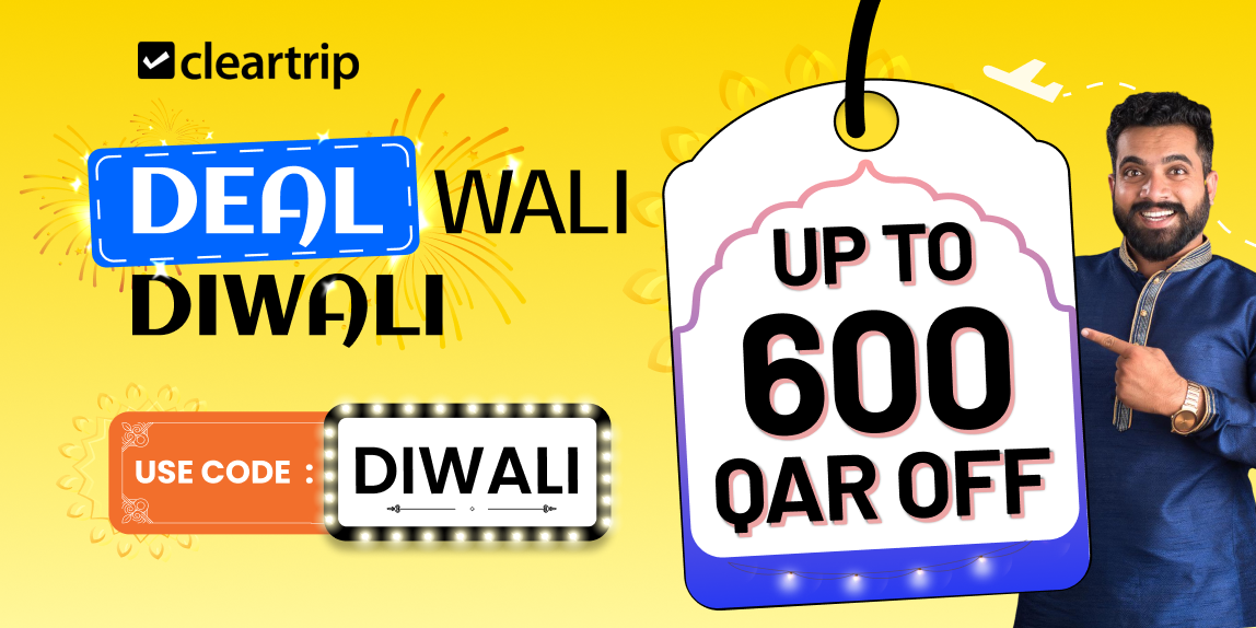 Cleartrip's got a firecracker of a deal this Diwali! Get up to QAR 600 OFF on flights when you book with code DIWALI. The more seats you book, the bigger the bang for your buck. But just like rockets, this offer won't last long---so blast off and book today!